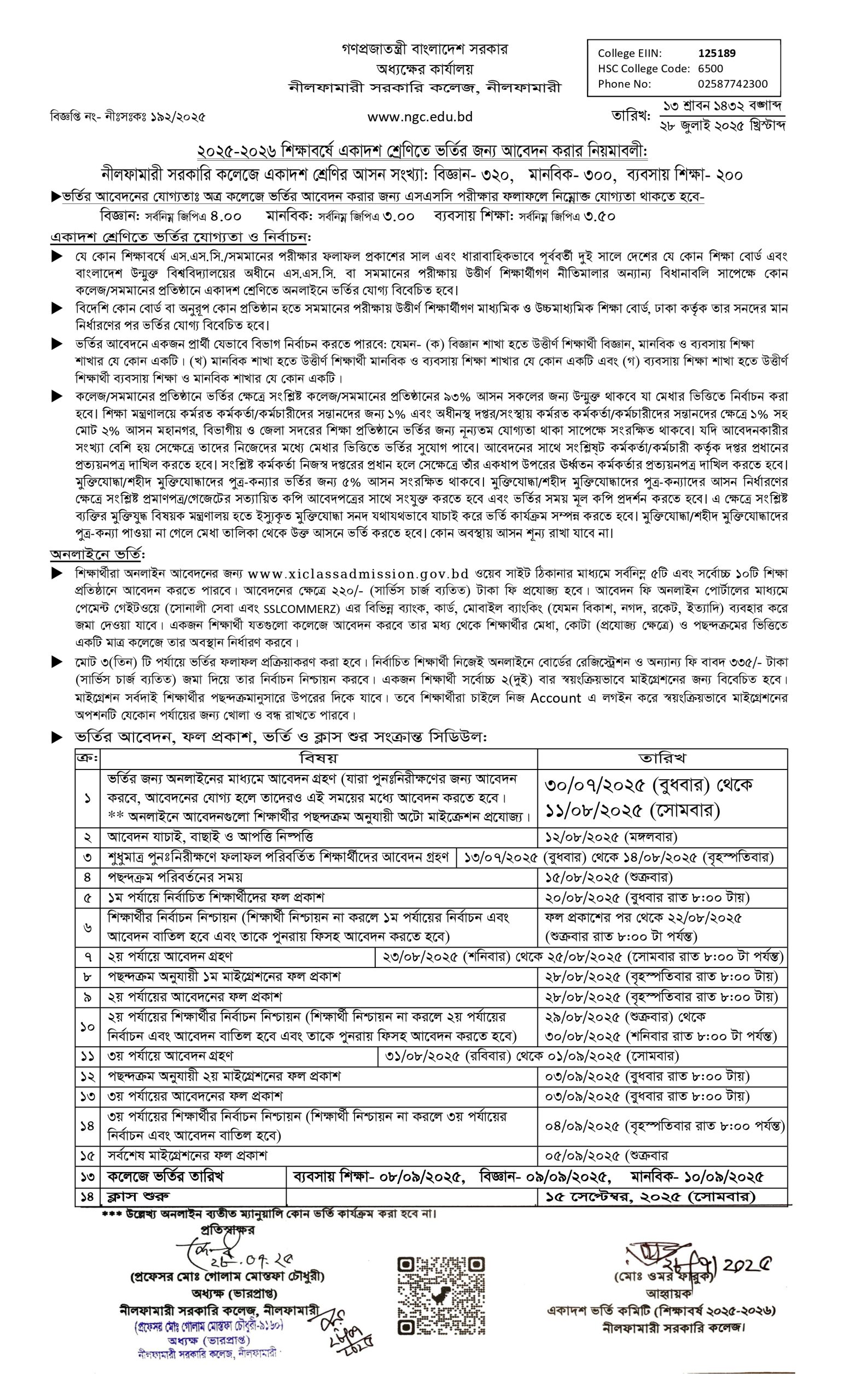 ২০২৫-২০২৬ শিক্ষাবর্ষে একাদশ শ্রেণির ভর্তির আবেদন সংক্রান্ত বিজ্ঞপ্তি