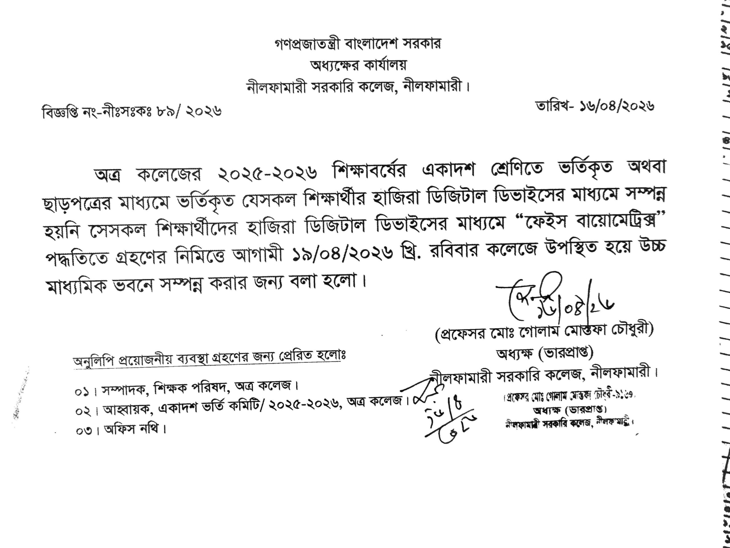 একাদশ শ্রেণির ফেইস বায়োমেট্রিক্স