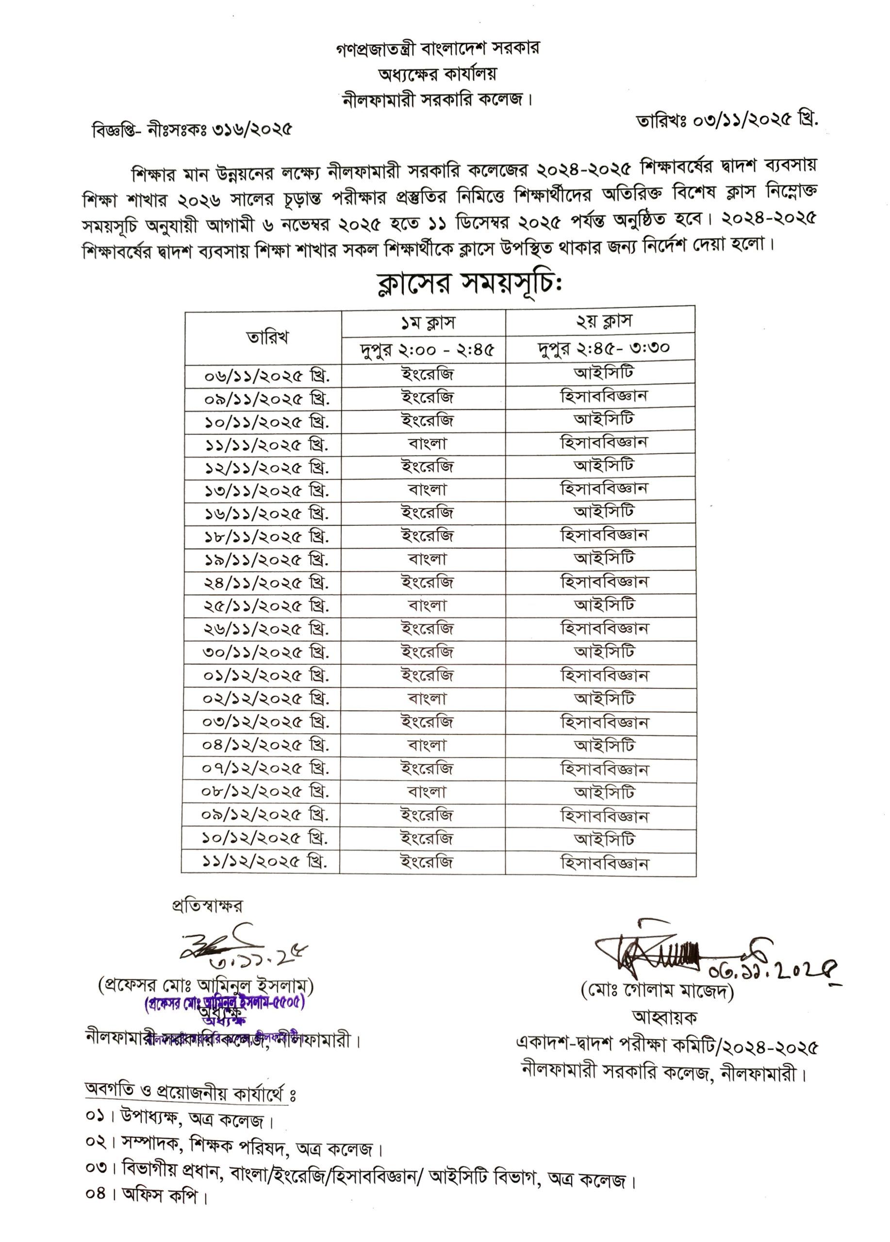 | 5 | দ্বাদশ ব্যবসায় শিক্ষা শাখার বিশেষ ক্লাসের সময়সূচি | November 3, 2025 | |