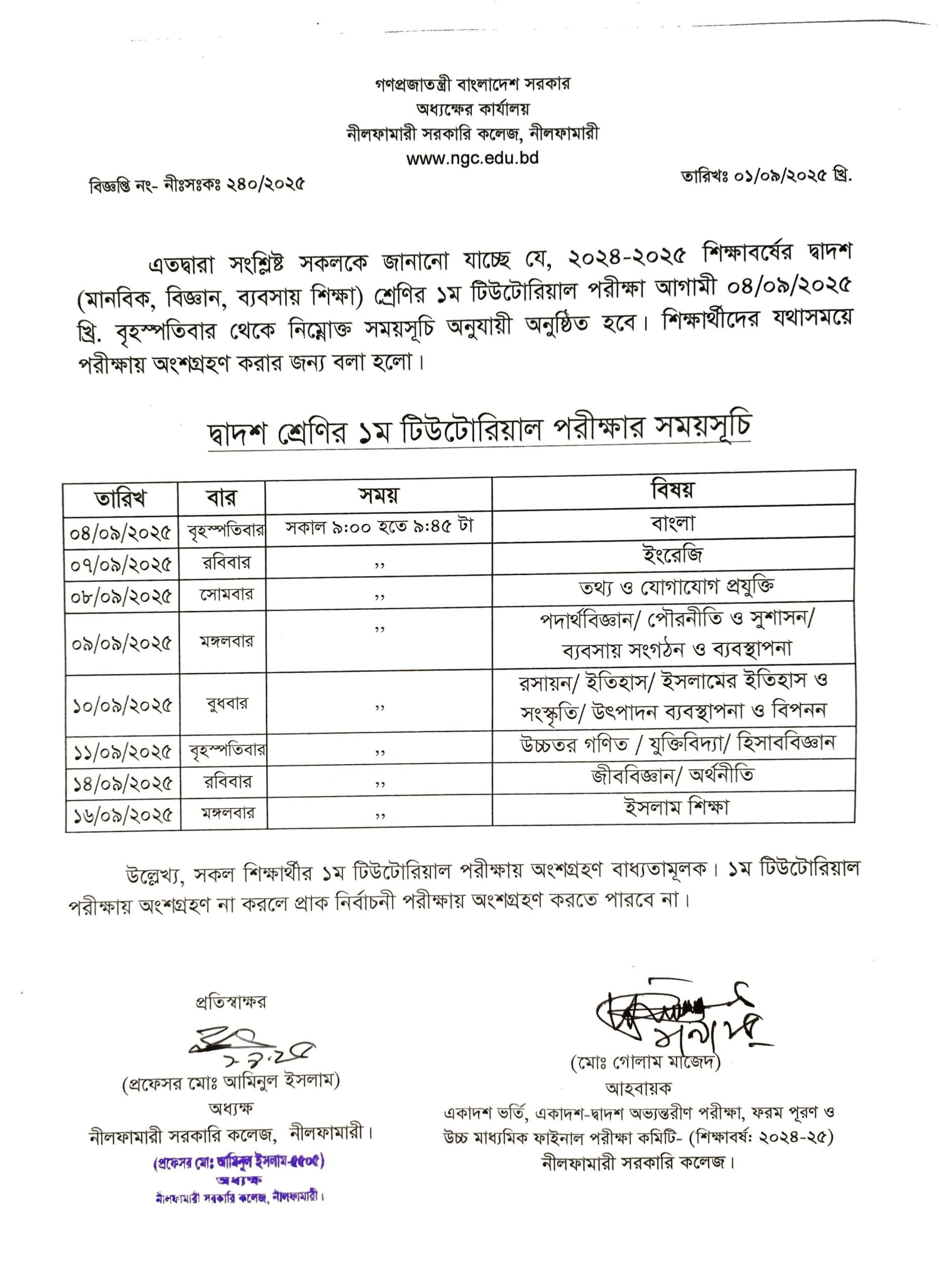 ২০২৪-২০২৫ শিক্ষাবর্ষের দ্বাদশ শ্রেণির ১ম টিউটোরিয়াল পরীক্ষার সময়সূচি |