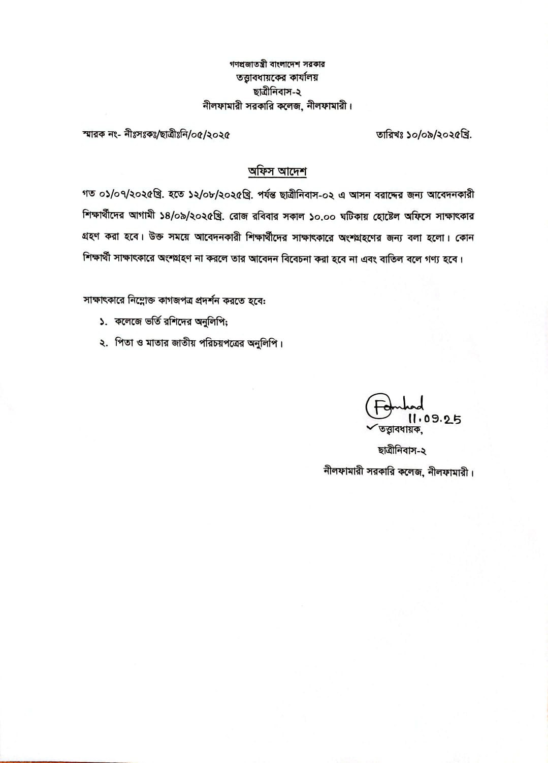ছাত্রীনিবাস-২ এ ভর্তি সংক্রান্ত সাক্ষাৎকার |